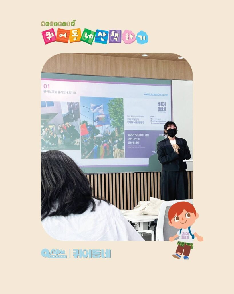 알바하는 퀴어들과 퀴어동네 산책하기 활동이야기 퀴어동네가 지난 4월 18일 청소년성소수자문화연대 큐사인의 4월 월례모임 <알바하는 퀴어들과 퀴어동네 산책하기>에 참여했습니다. 퀴어동네는 타리가 강사로 나서 ‘퀴어동네와 함께하는 근로기준법 알아가기’ 교육을 진행했습니다. 큐사인 회원분들과 만나 정말 뜻깊고 즐거운 시간이었습니다. ♥2 2026-04-272026-04-27활동이야기